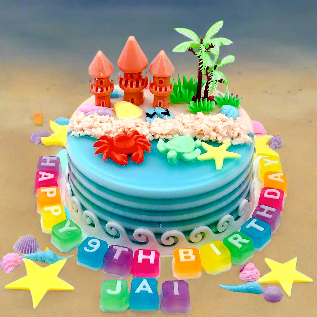 Delight your little one by surprising him/ her with this delectable beach agar agar cake on his/ her special day!